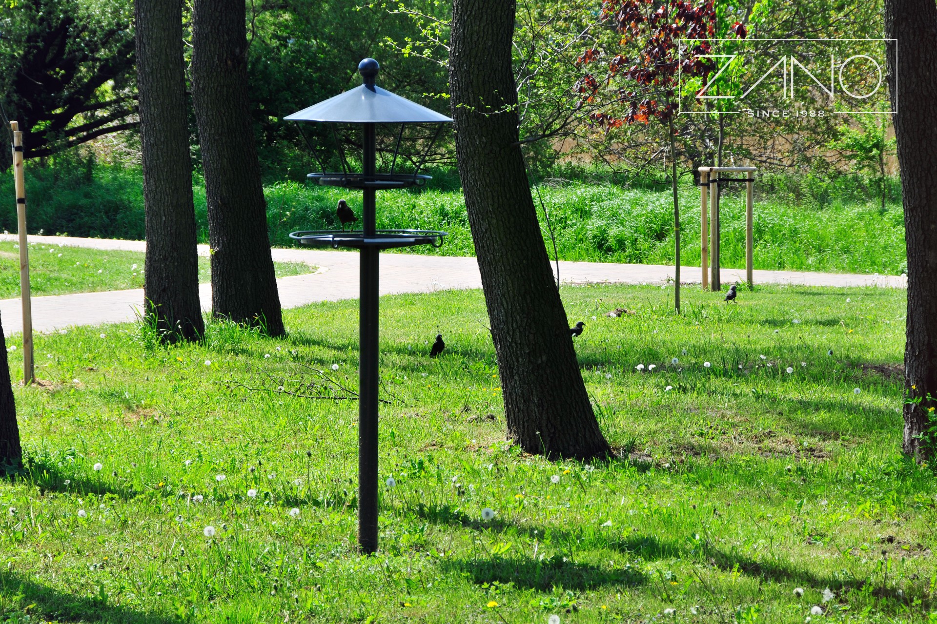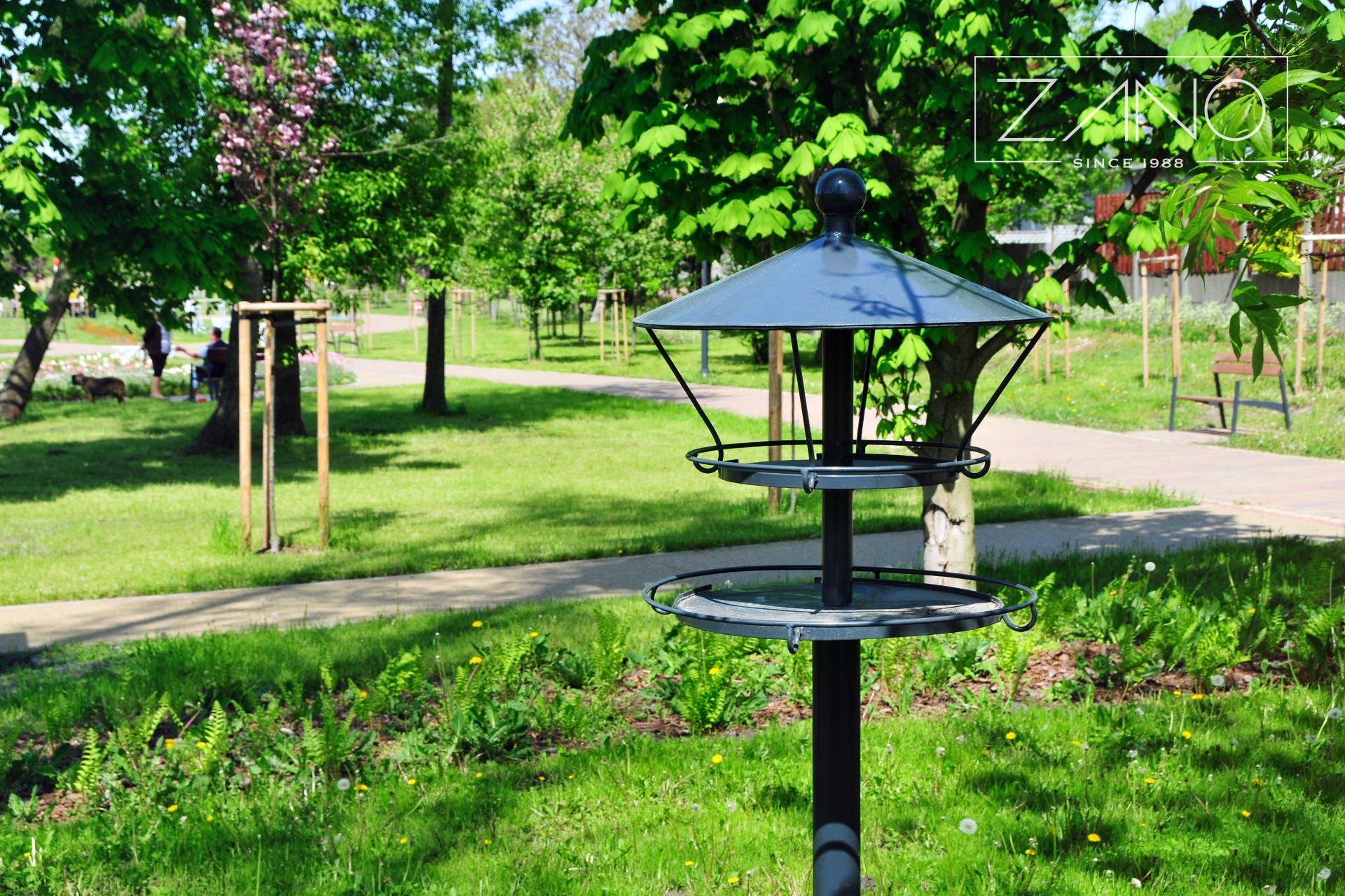 O noutate absolută în oferta companiei ZANO. O hrănitoare pentru păsări cu un design retro, care combină mai multe caracteristici: caracterul practic al unei hrănitori clasice și atenția acordată designului, care este domeniul de activitate al ZANO. Atașamentul față de design este important datorită faptului că alimentatorul poate fi, de asemenea, un decor, ca orice altă piesă de mobilier urban. Fabricat din țevi de oțel, vopsite în orice culoare RAL, și piese turnate din fontă ca element decorativ. Structura este așezată pe un stâlp înalt de 2,4 metri și este montată pe o fundație din beton.
