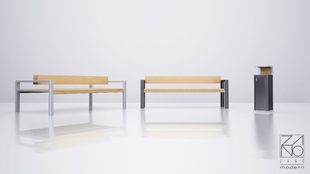 Datorită spătarului coborât, banca este bună pentru alinierea corectă a coloanei vertebrale. Modelul reprezintă linia modernă, adică bănci moderne, potrivite atât pentru centre comerciale, cât și pentru clădiri de birouri sau zone exterioare. Atât șezutul, cât și spătarul sunt realizate din lemn de molid sau pin. La cerere specială, poate fi realizat și din lemn exotic. Structura este realizată din oțel negru sau din oțel inoxidabil. Asamblarea este posibilă cu ajutorul unor fișe de perete, sau banca poate fi amplasată ca element independent.