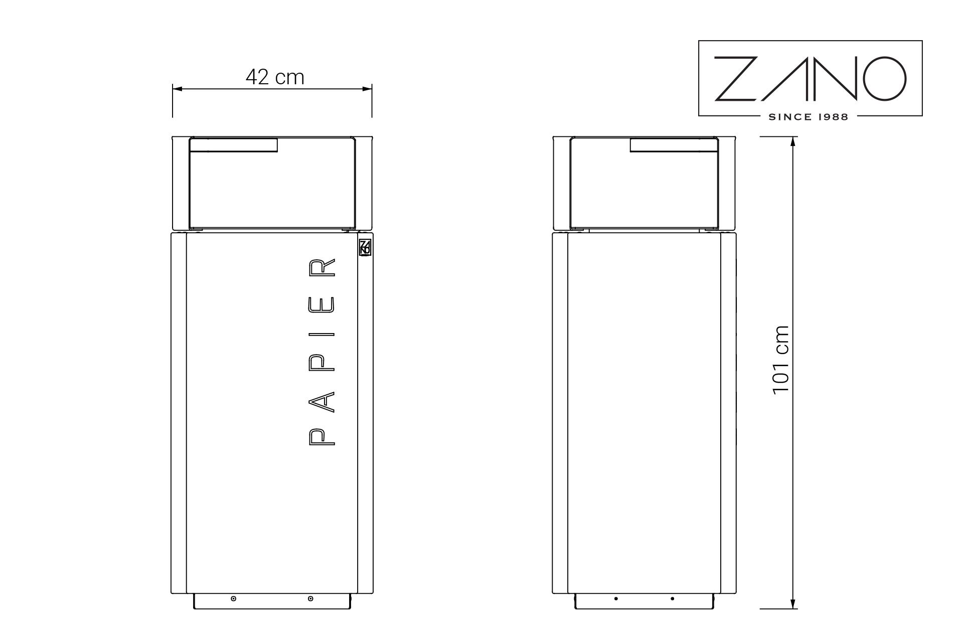 Coșul de reciclare 03.048.2 cu scrumieră este o structură curbată din oțel carbon sau oțel inoxidabil. Se deschide de sus și este prevăzut cu inserții interne. Poate fi personalizat la cererea clientului - opțiune din oțel carbon acoperit cu pulbere în orice culoare RAL, inscripții pe oțel decupate, lipite sau, în cazul oțelului inoxidabil, gravate. Ansamblul coșului de gunoi: cu șuruburi.