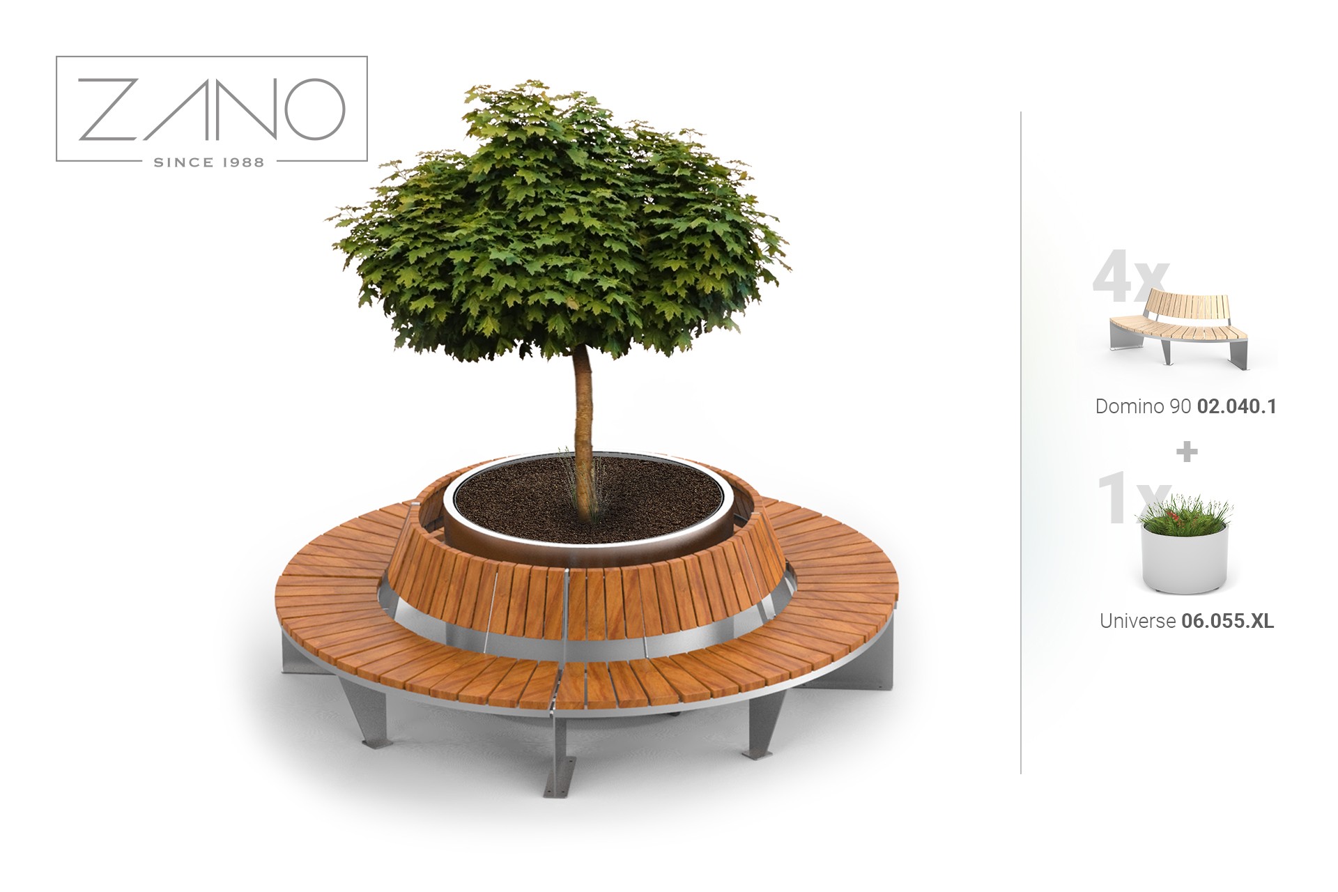 Linia de mobilier urban Universe include bănci, ghivece de flori și o stație solară, toate din oțel. Forma lor ovală, minimalistă, se potrivește perfect în mediile arhitecturale și urbane moderne.