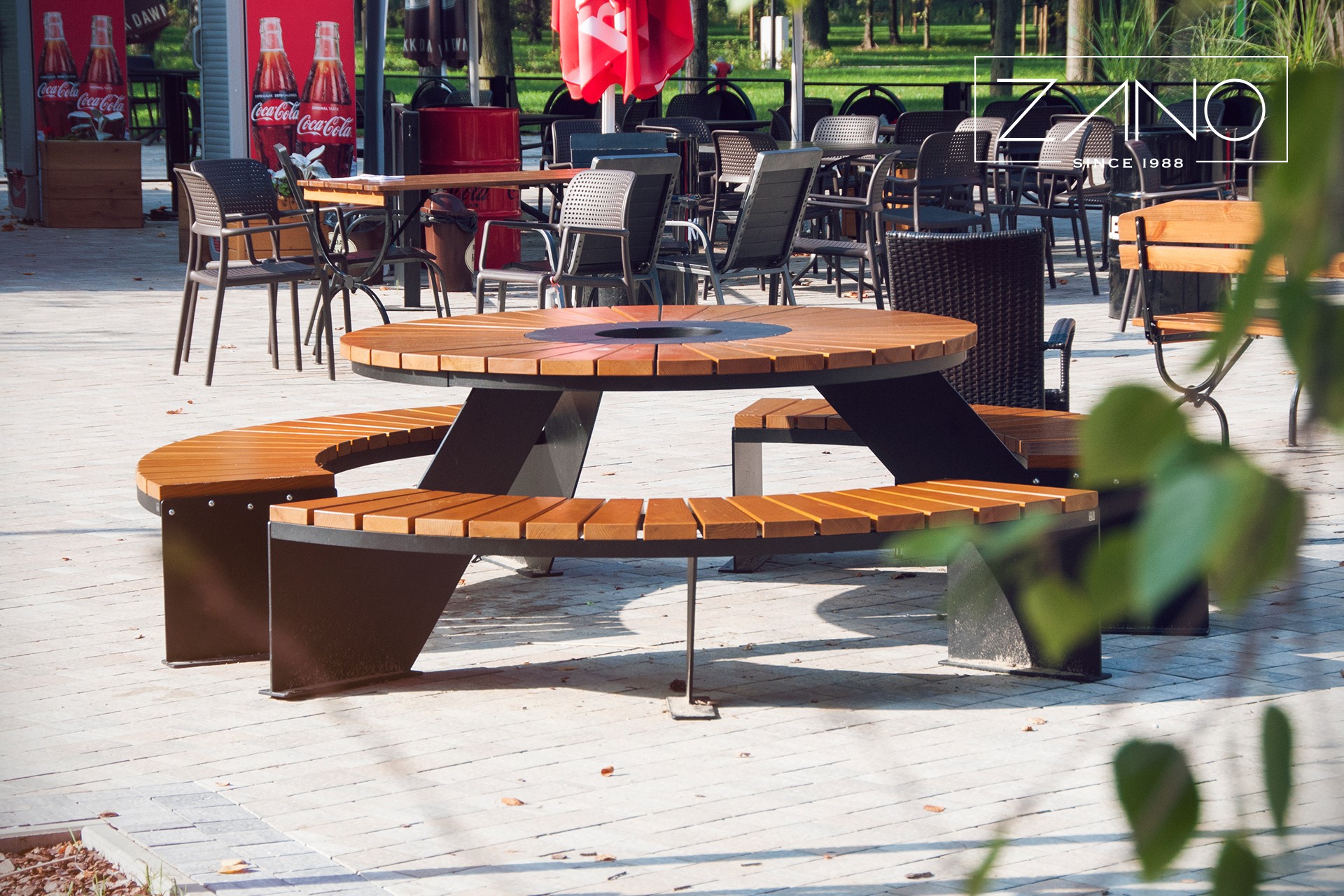 Mobilierul din seria Domino include, de asemenea, mese de picnic