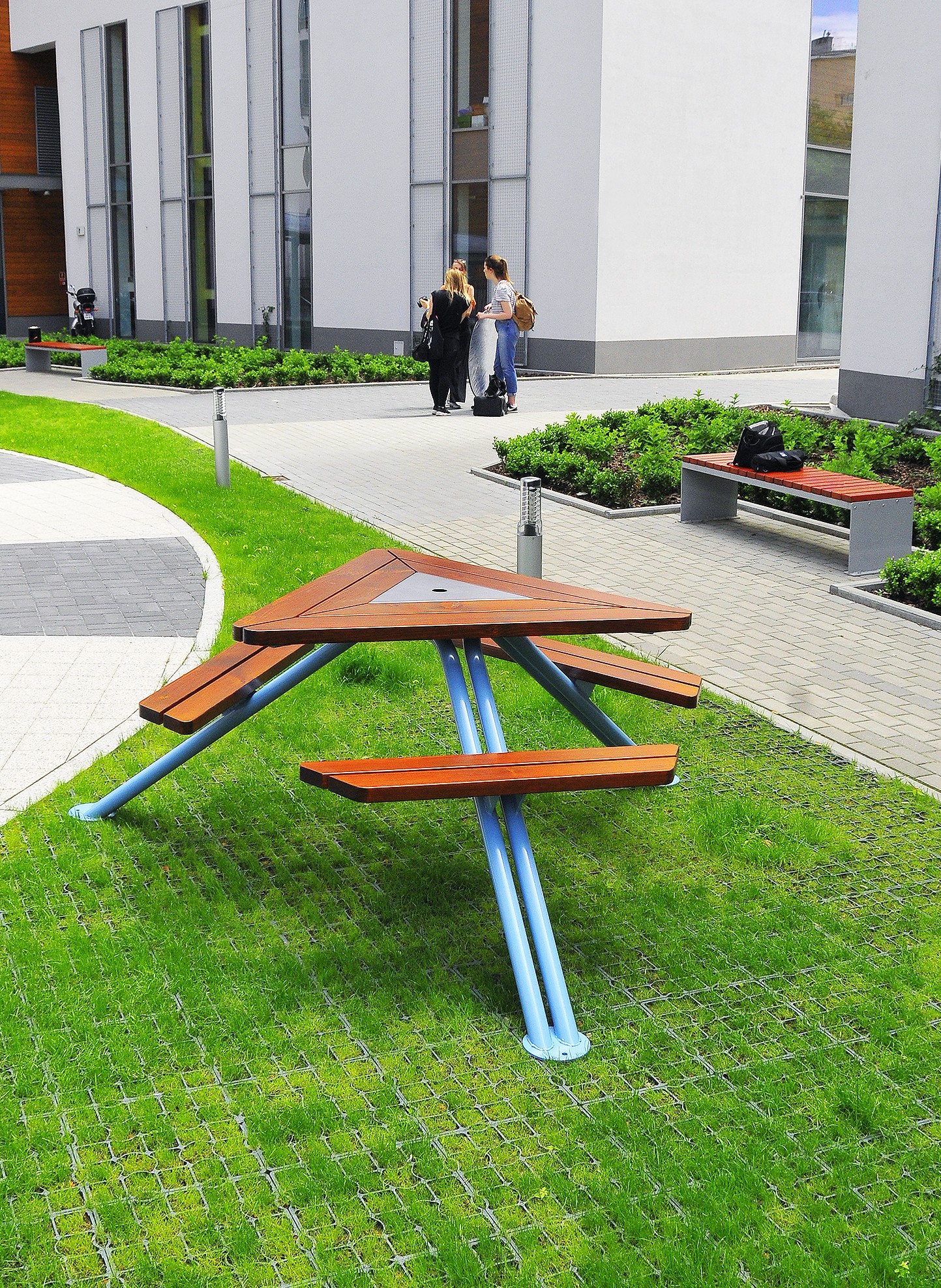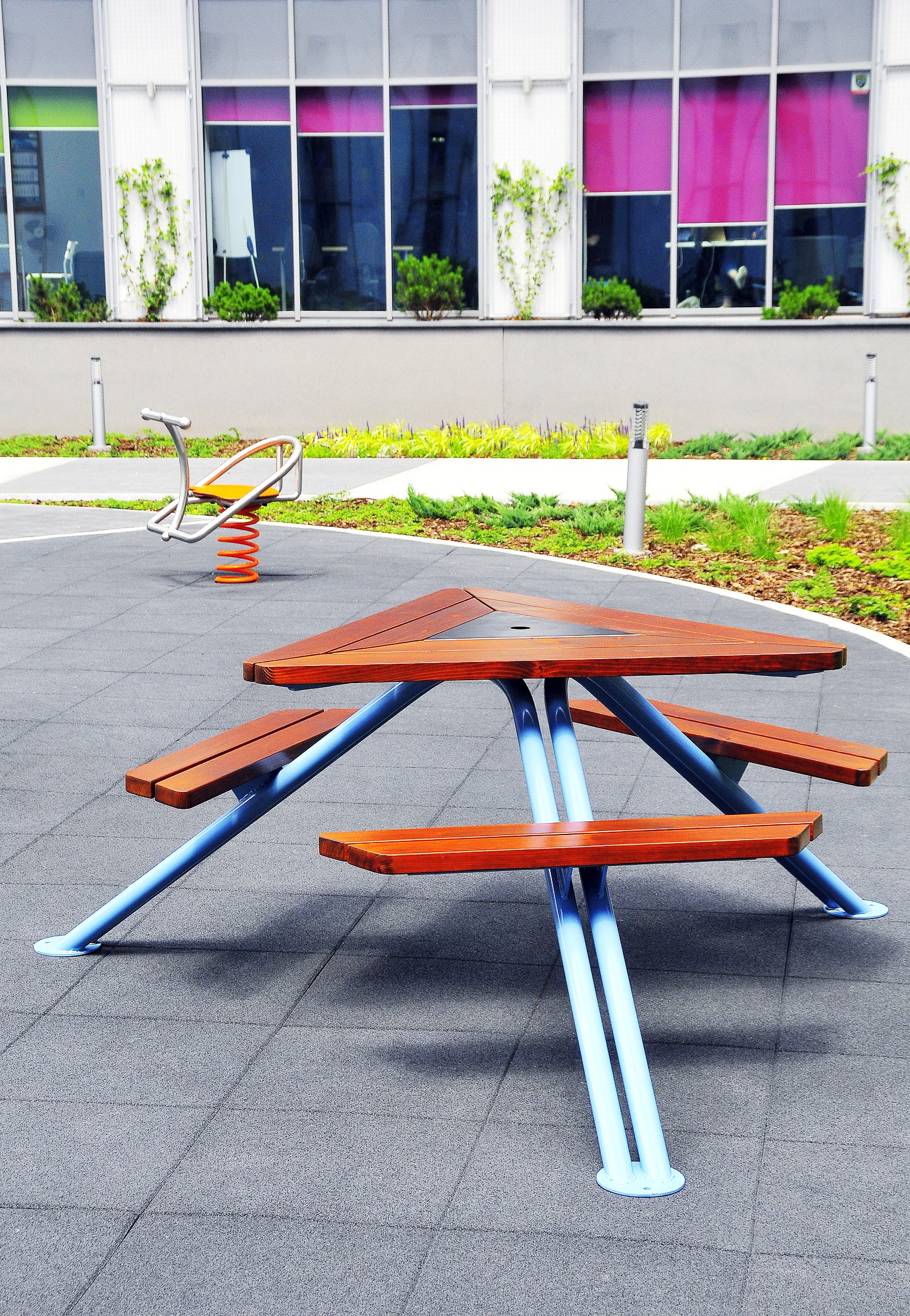 Combinația dintre o structură solidă din oțel și elemente realizate din lemn de cea mai bună calitate a făcut posibilă crearea unui mobilier urban cu un caracter modern și funcția unei mese de picnic tradiționale. Datorită formei sale bine gândite, masa de picnic Mars poate găzdui simultan 6 persoane, iar deschiderea din centrul părții superioare permite montarea unei umbrele.