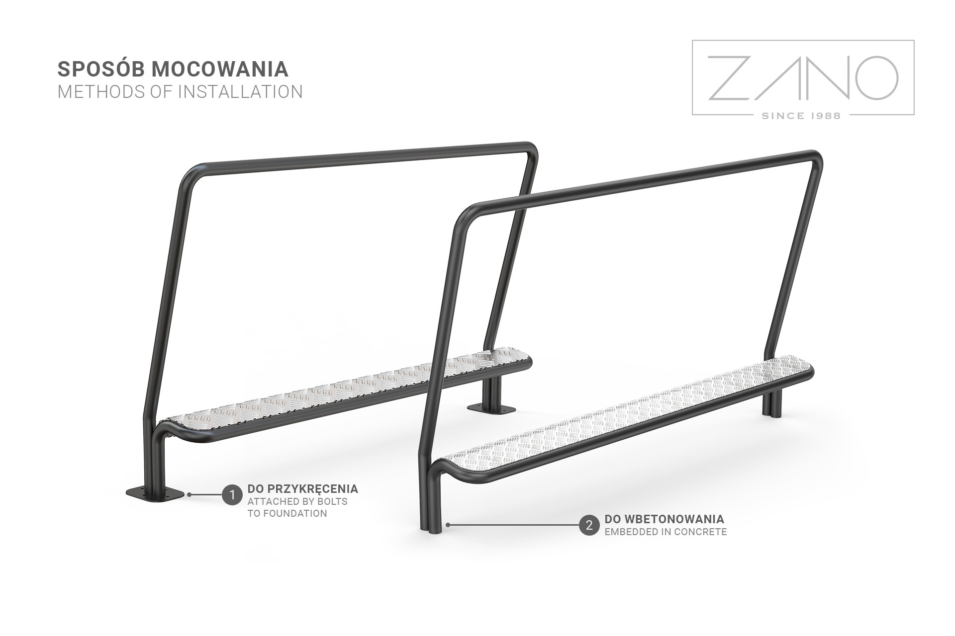 Suportul pentru bicicliști este realizat din tuburi și este format din două părți. Pe cea mai înaltă vă puteți ține cu mâna, iar pe cea mai joasă vă puteți sprijini piciorul. Designul simplu îi permite să se integreze în orice spațiu urban. Suportul este fabricat din oțel inoxidabil sau oțel galvanizat. Instalare cu ajutorul unei fundații din beton sau a unor prize de perete.