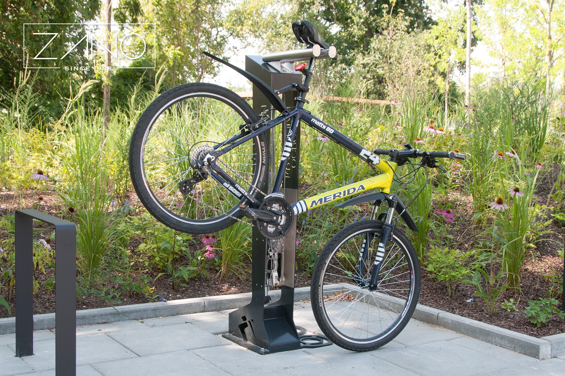 O versiune a stației de reparații cu un suport suplimentar pentru biciclete.