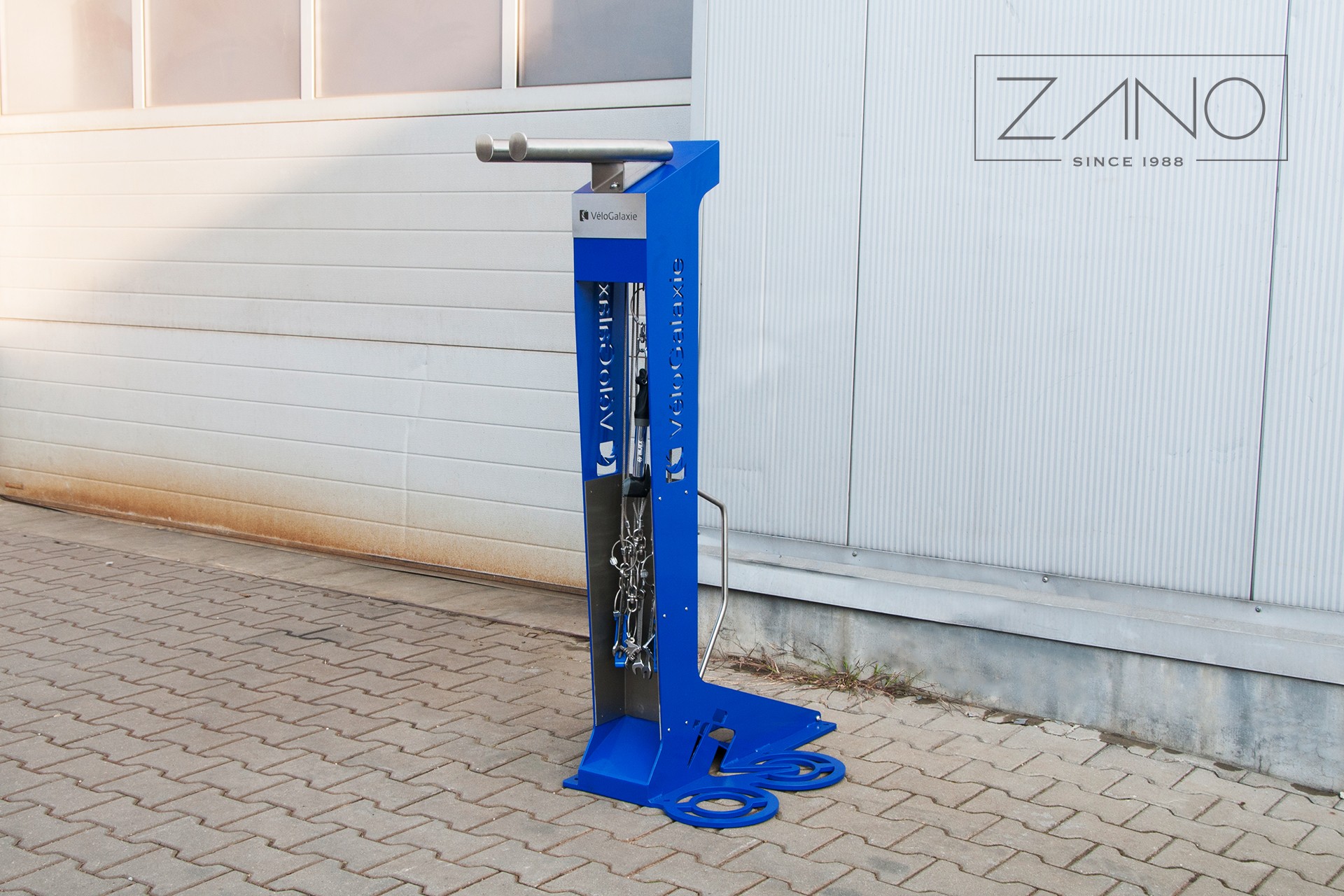 Versiunea de bază a stației, echipată cu un suport și un set de scule pentru biciclete și o pompă manuală pentru biciclete.