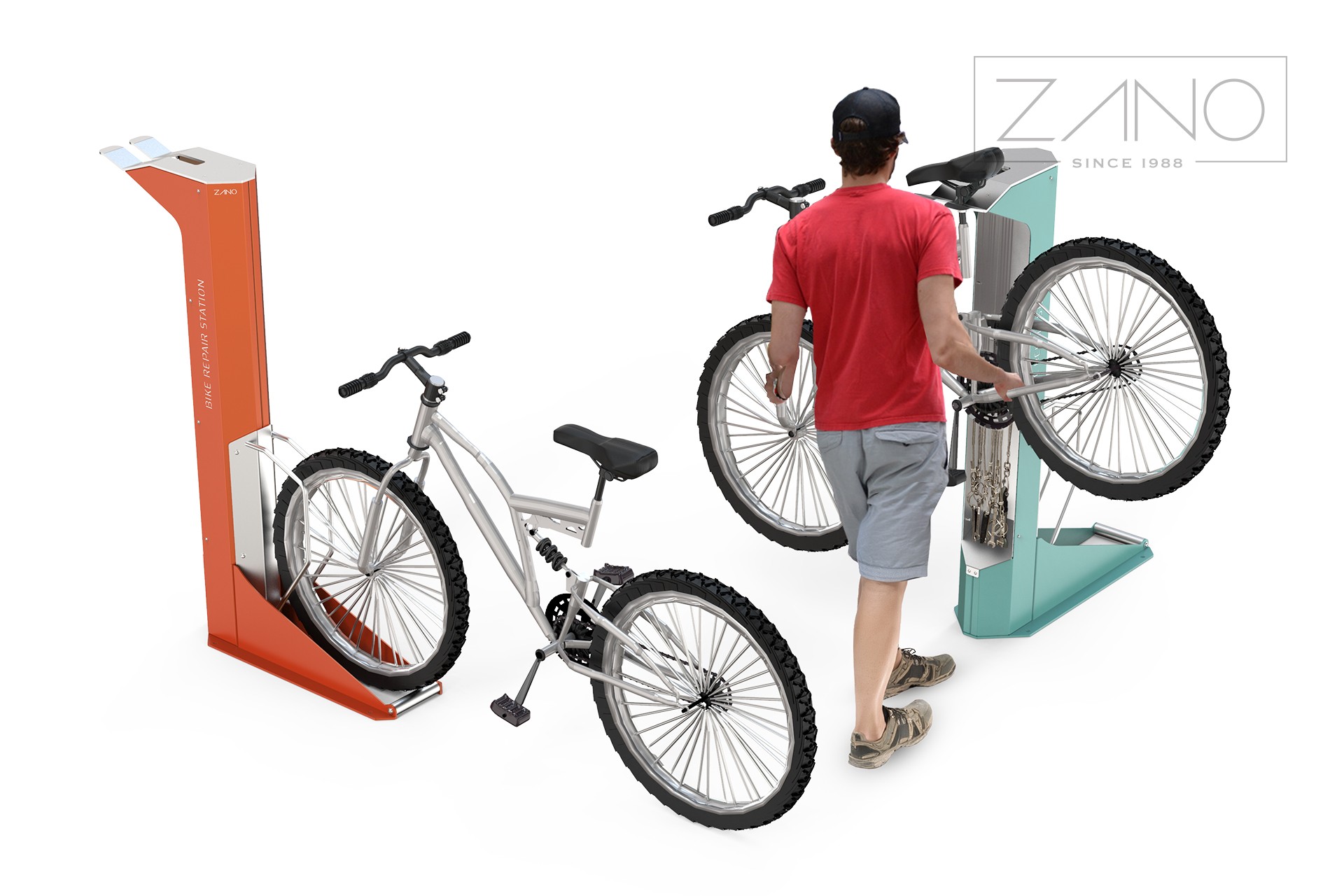 Stația de reparații pentru biciclete cu autoservire Stilo este concepută pentru reparații și ajustări ad-hoc ale bicicletelor de către utilizatorul însuși, folosind construcția dispozitivului ca bază și instrumentele incluse în echipamentul stației de reparații. Stația poate fi utilizată în oraș pentru piste de biciclete, precum și pentru călătorii pe distanțe lungi. Datorită dimensiunii sale, stația poate fi utilizată atât de copii, cât și de adulți. Stația este fabricată din oțel. Clientul poate alege un model fabricat în întregime din oțel inoxidabil sau din oțel carbon galvanizat acoperit cu pulbere într-o culoare culoare RAL specificată.. În versiunea vopsită, componente precum suportul superior pentru biciclete și peretele interior cu spațiu de depozitare a sculelor rămân din oțel inoxidabil. Stația este montată la sol cu ajutorul fișelor de perete. Uneltele pentru repararea bicicletelor sunt fixate de stație cu cabluri de oțel acoperite cu PVC pentru a preveni furtul. Unelte: