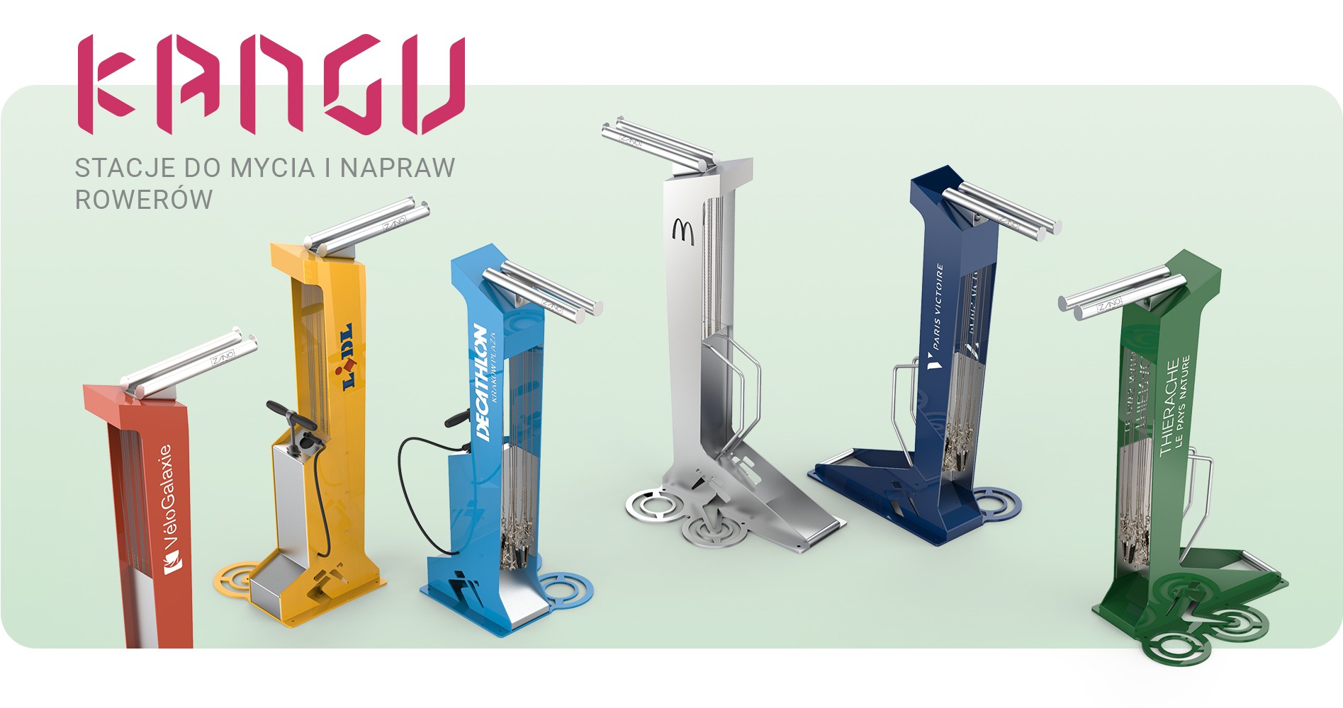 "KANGU"- Stație de autoservire pentru repararea și curățarea ad-hoc a bicicletelor. Este proiectată pentru autorepararea și întreținerea bicicletelor, precum și pentru curățarea de către utilizator, folosind structura stației ca bază și perii și uneltele incluse în echipament.