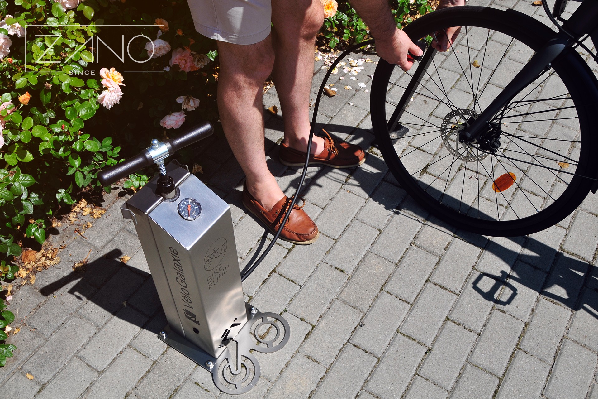 Pompa este un produs autonom montat pe podea. Este echipată cu un manometru și un cap adecvat pentru supapele Presta și Schrader.